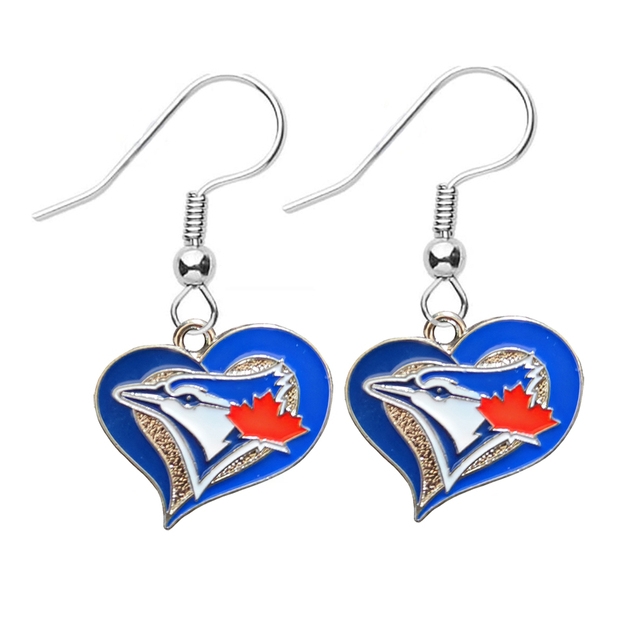 Orecchini Sportivi con Logo della Squadra di Baseball Toronto Blue Jays, Smalto a Goccia a Forma di Cuore