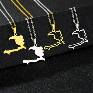 Collana in Acciaio Inossidabile con Ciondolo Mappa di Haiti per Bambini, Placcata in Oro 18K, Catena a Maglie Classica, 20 Pollici