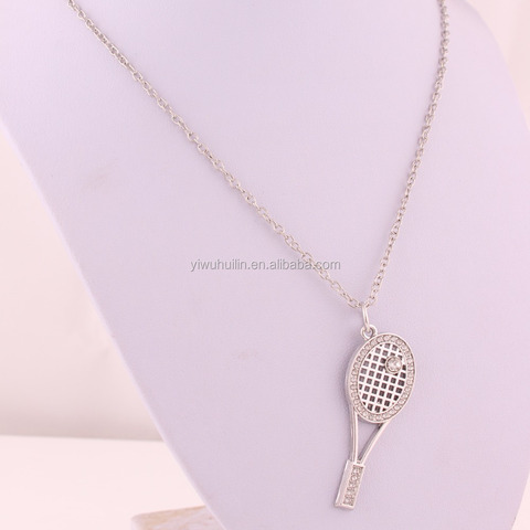 A500410 फैशन गहने फैशनेबल बैडमिंटन रैकेट लटकन पुरुषों महिलाओं के फैशन डिजाइन सरल चांदी की चेन हार