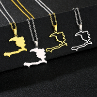 שרשרת נירוסטה מצופה זהב 18 קראט עם תליון מפת האיטי קלאסי לילדים, שרשרת חוליות באורך 20 אינץ'