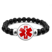 สร้อยอัญมณีสำหรับผู้ป่วยเบาหวานชนิดข้ามพรมแดนสำหรับผู้หญิงเครื่องประดับจากยุโรปและสหรัฐอเมริกาสร้อยข้อมือลูกปัดสีดำเครื่องประดับมือแบบยืดหยุ่น